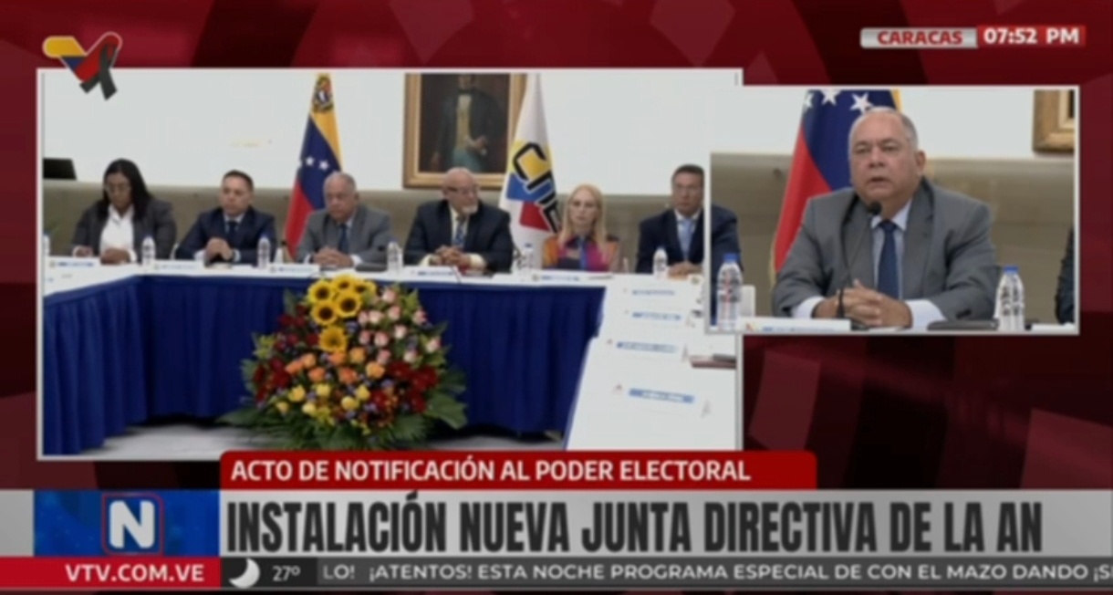 CNE recibe notificación oficial de la nueva Junta Directiva de la Asamblea Nacional y manifiesta solidaridad con el presidente Maduro y la Primera Dama
