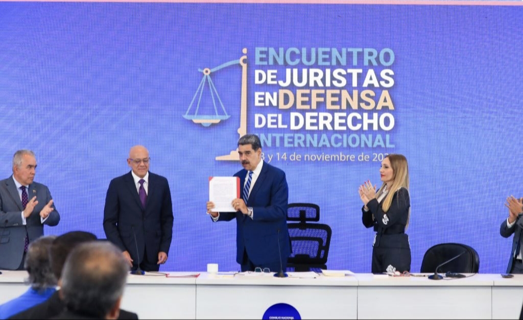 El presidente de la República Bolivariana de Venezuela, Nicolás Maduro, lideró este viernes 14 de noviembre el Encuentro de Juristas en Defensa del Derecho Internacional, actividad central del Congreso Nacional de Soberanía y Paz que reúne a expertos y juristas nacionales e internacionales para debatir sobre la vigencia del Derecho Internacional como fundamento para la paz y la soberanía de las naciones.