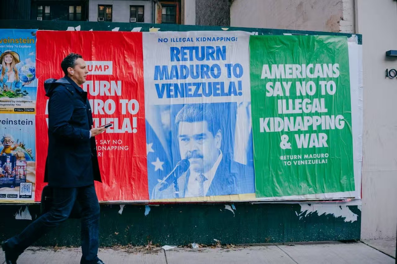 Nueva York se cubre de carteles exigiendo la liberación del presidente venezolano Nicolás Maduro y la primera dama Cilia Flores